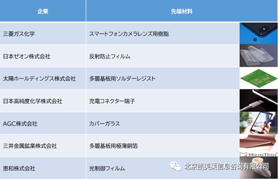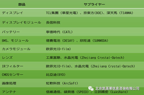 三菱ガス化学株式会社、日本ゼオン株式会社、太陽ホールディングス株式会社、日本高純度化学株式会社、AGC株式会社、恵和株式会社、三井金属鉱業株式会社などスマートフォン先進材料のメーカーもHuaweiの有力なパートナーとなる可能性が見られる(表4)。