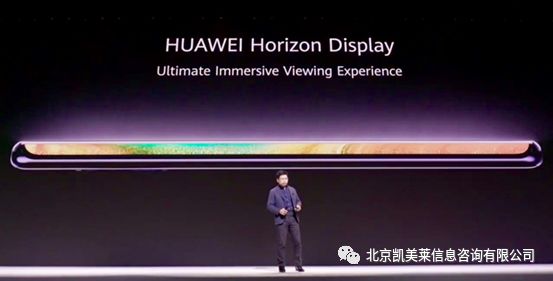 図1 HuaweiMate30シリーズのドイツ・ ミュンヘンでの発表会で、余承東がMate30 Proの「Horizonディスプレイ」を展示